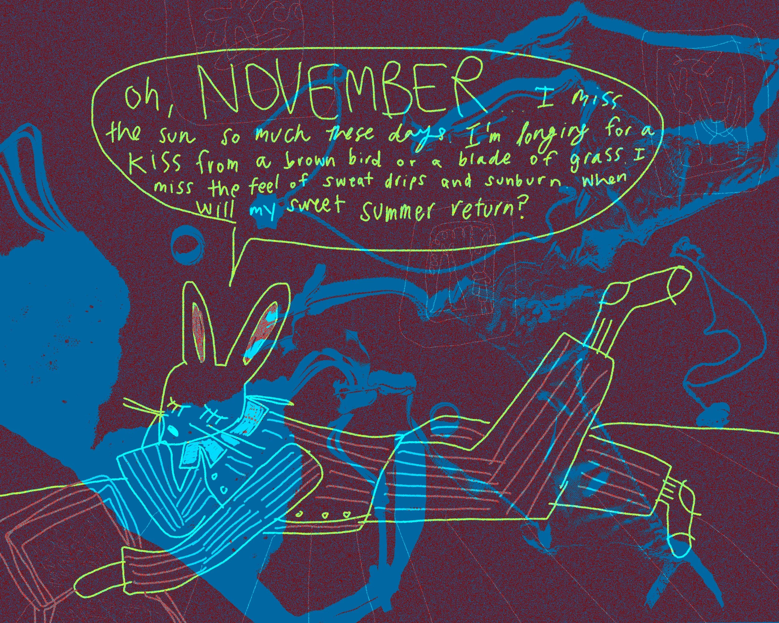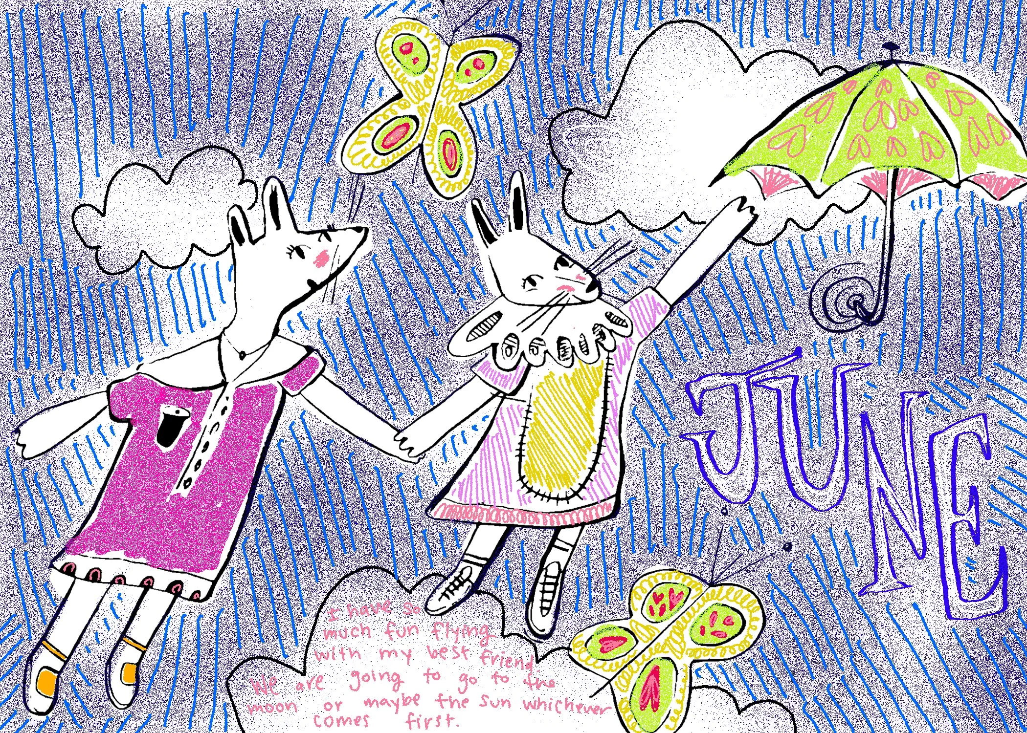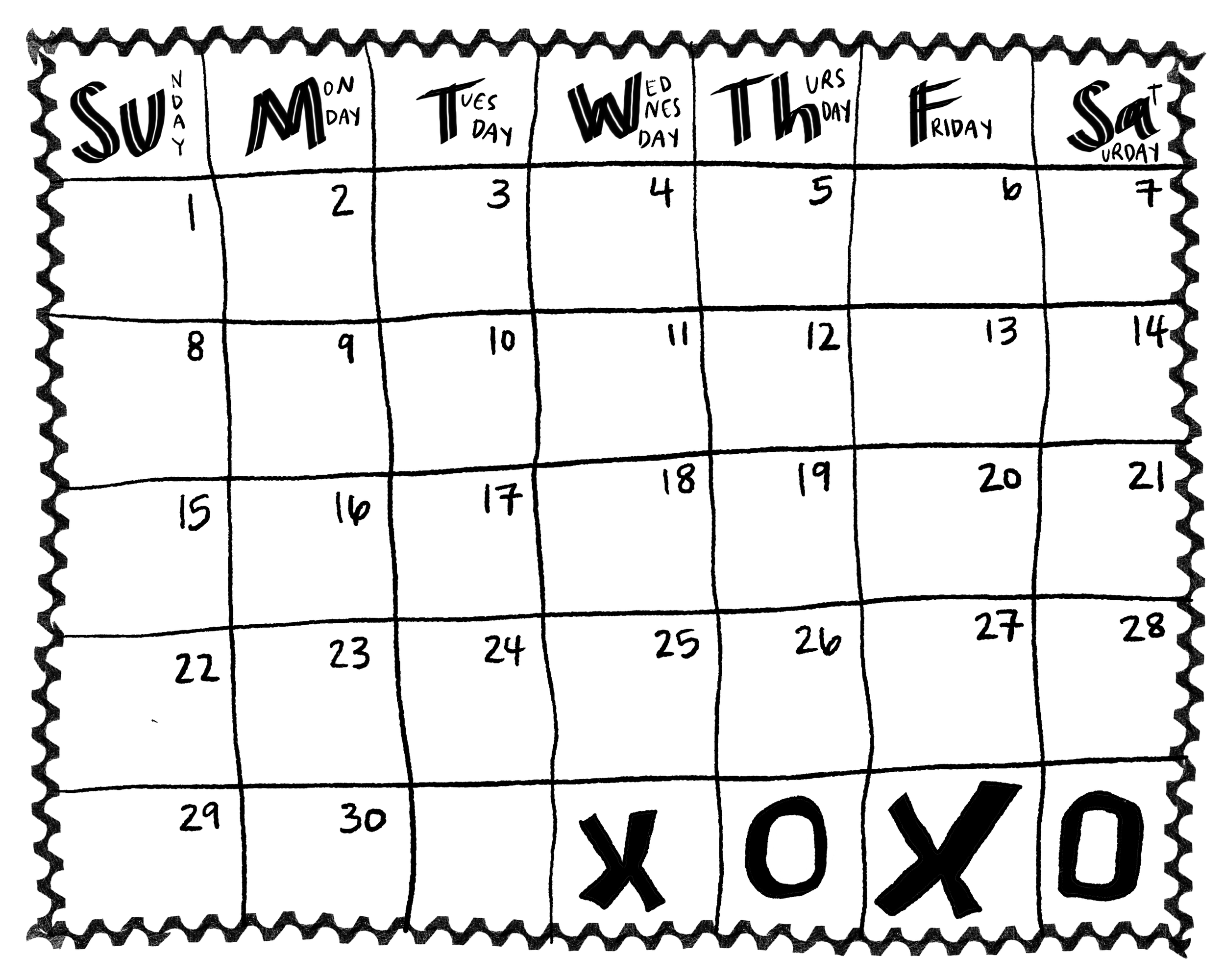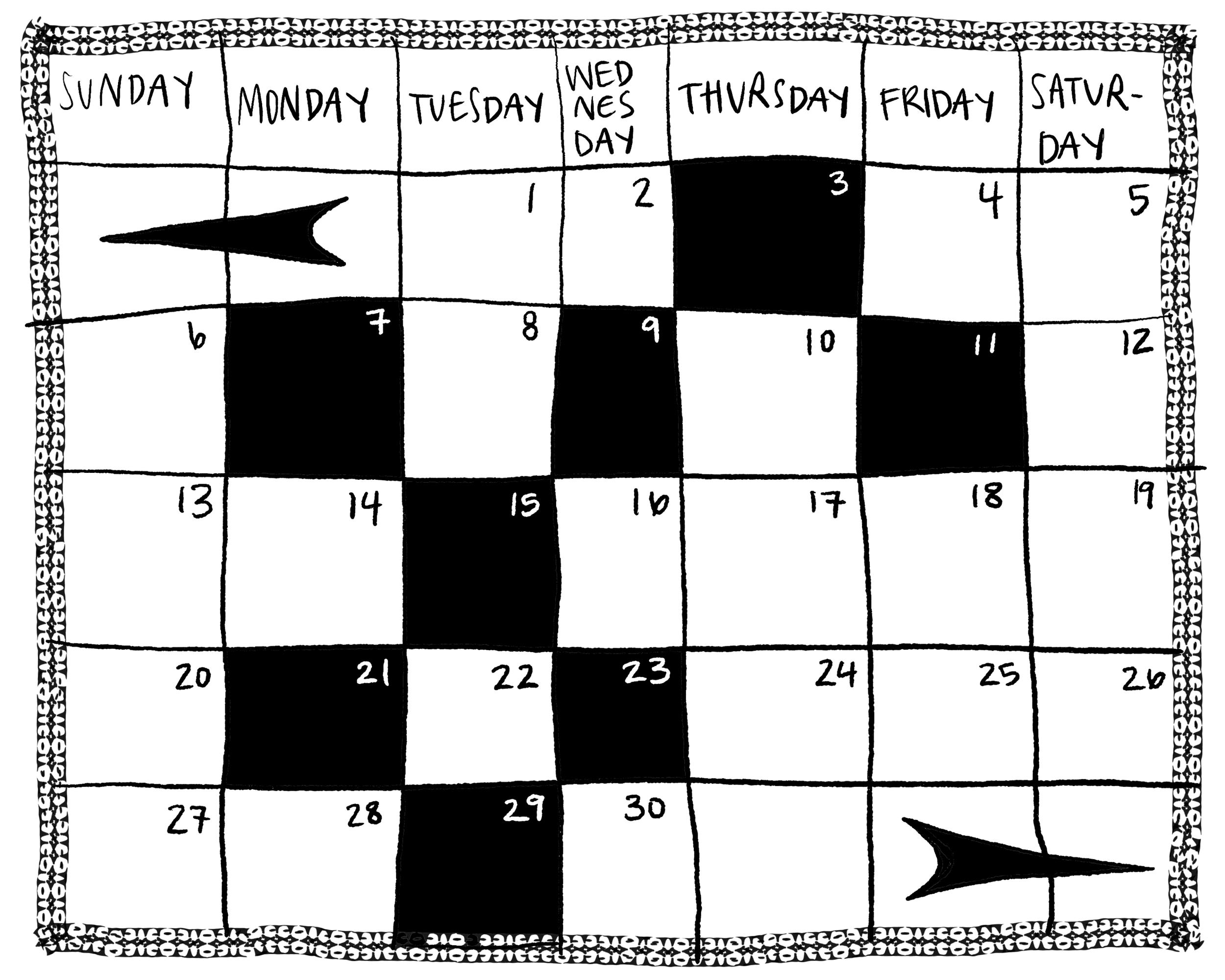 Hand inked month pages, scanned into Photoshop, layered, colorized, collaged. Printed at Printworks in Chicago, IL. Limited run of 40.